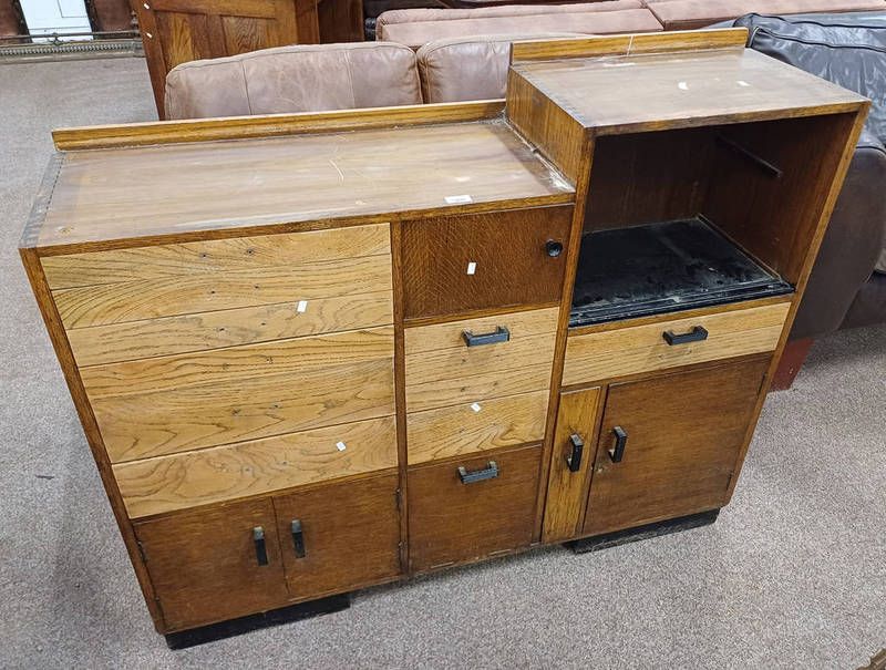 Late 19th century or early 20th century oak & walnut single door bedside cabinet on...