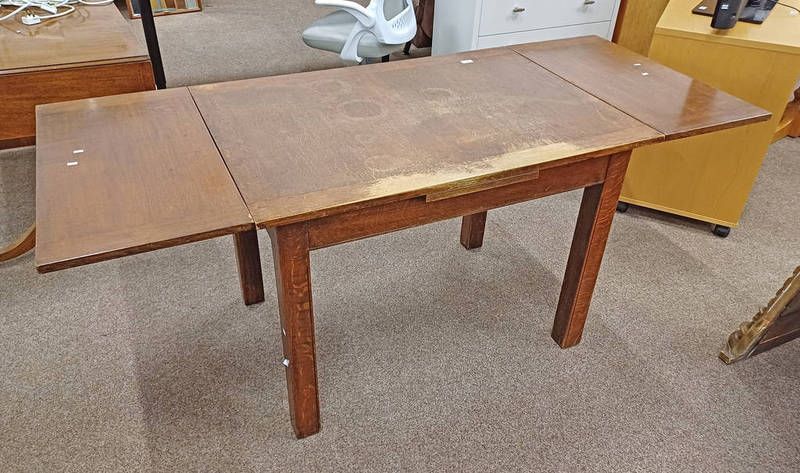 Early 20th century oak refectory table with 2 draw leaves on baluster supports - 122...