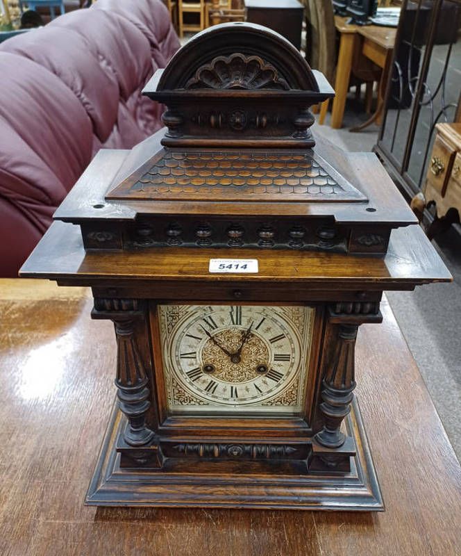 Junghans mahogany mantle clock with enamel dial, signed to works and dial