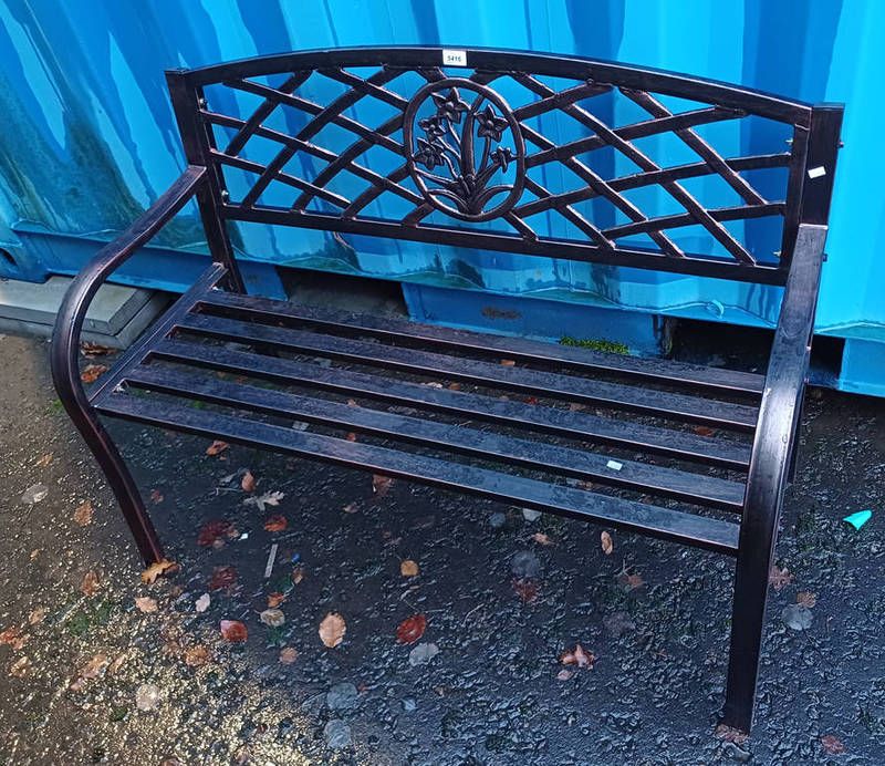 19th century coalbrookdale style painted cast iron bench ends with floral & cherub motifs &...