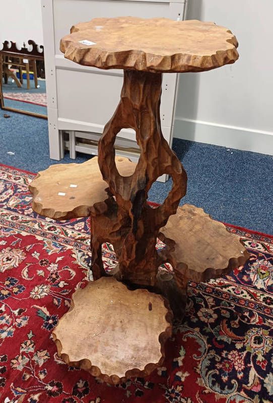 Decorative carved hardwood 4 tier pot stand - 99cm tall