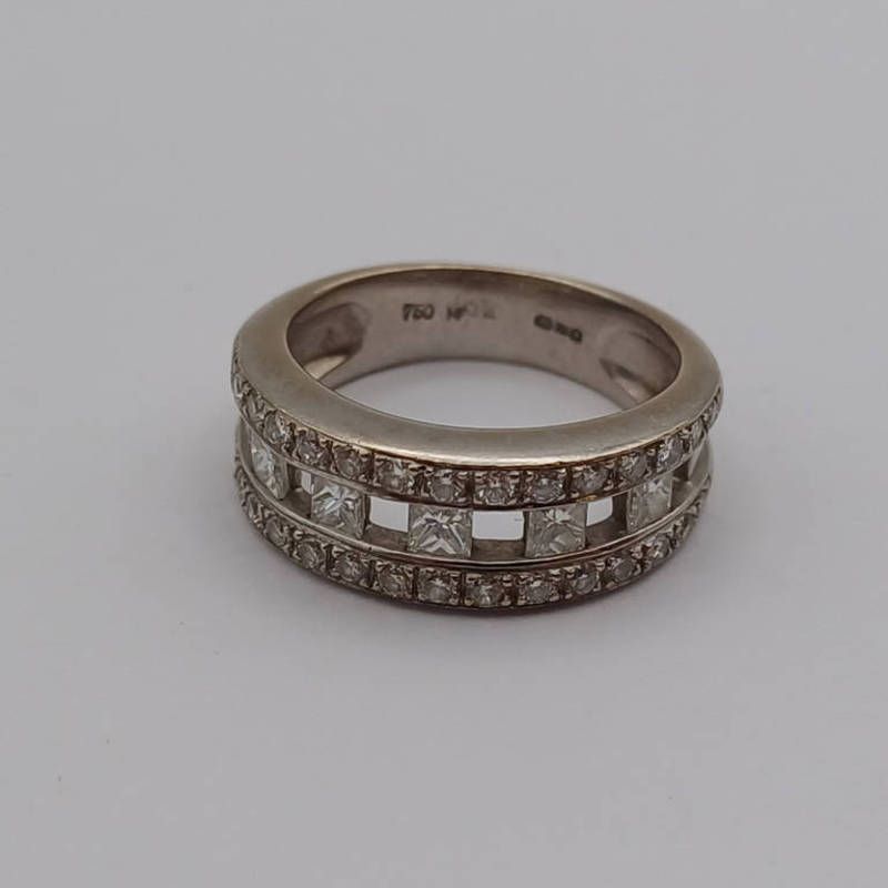 18ct gold diamond set half hoop ring - 6.7 g, ring size l