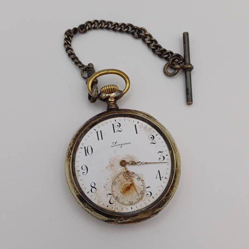 800 silver-gilt longines openface pocketwatch with subsidiary dial