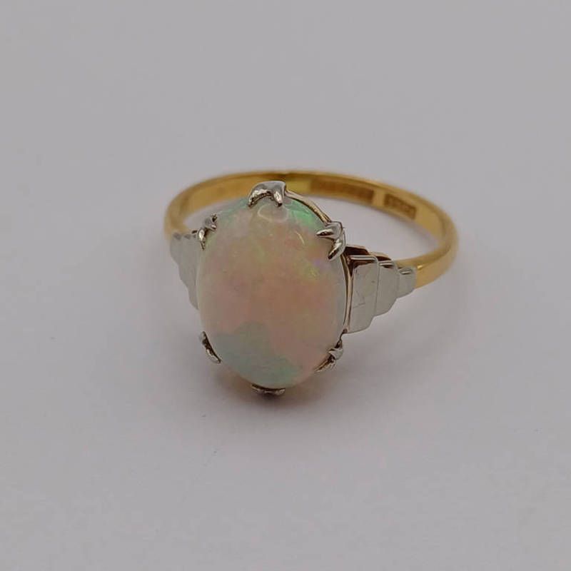 22 ct gold opal set ring with polished baguette style shoulders - 3.1g, ring size m