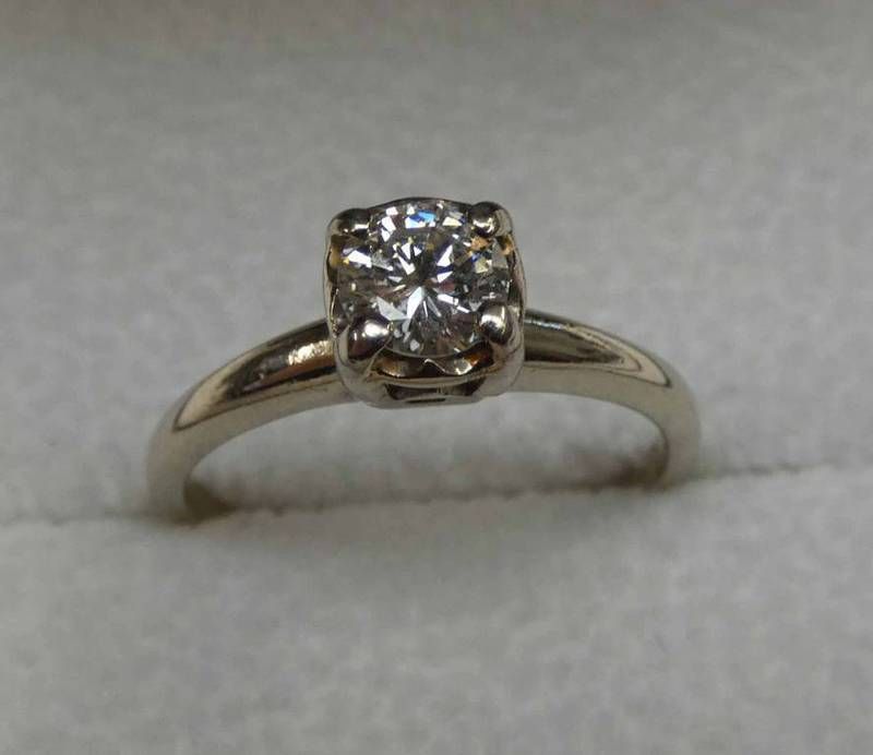 14k white gold diamond solitaire, the brilliant cut diamond approx 0.5 carats, ring size k