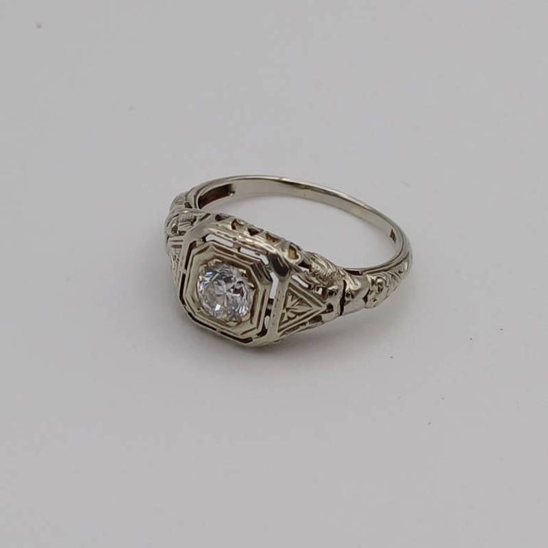 18k gold diamond set ring, the diamond set in a pierce work setting approx. 0.49 carats, ring size o