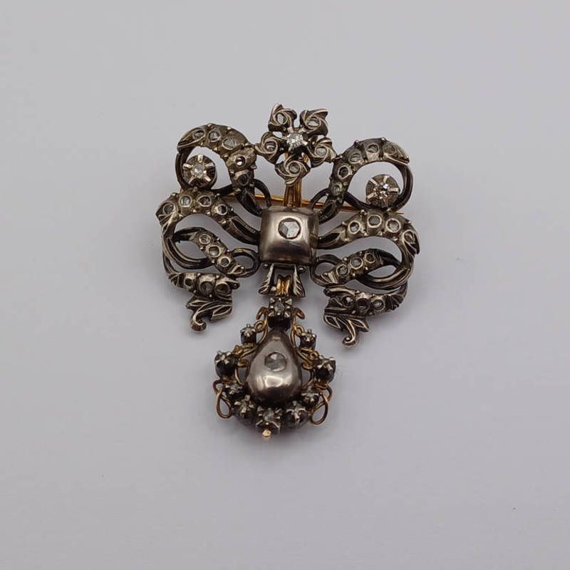 19th century diamond set silver & gold brooch pendant - 4cm long
