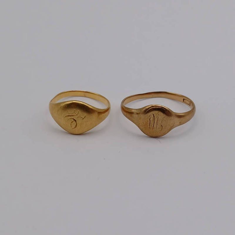 2 gold signet rings - 4.3g, both miss shapen