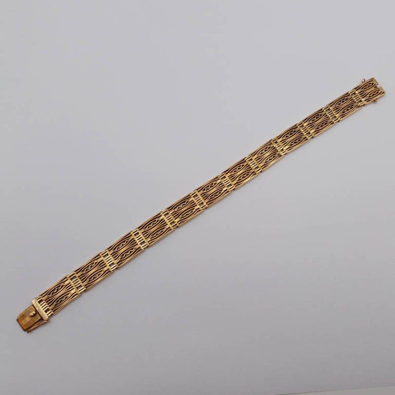 Early 20th century 15ct gold bracelet with pierce work panels - 19.5 cm long, 29.9 g