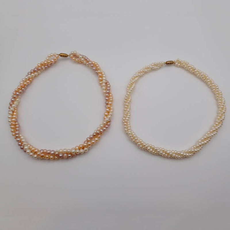 2 triple strand stained baroque pearl necklaces - 39 cm & 42 cm long