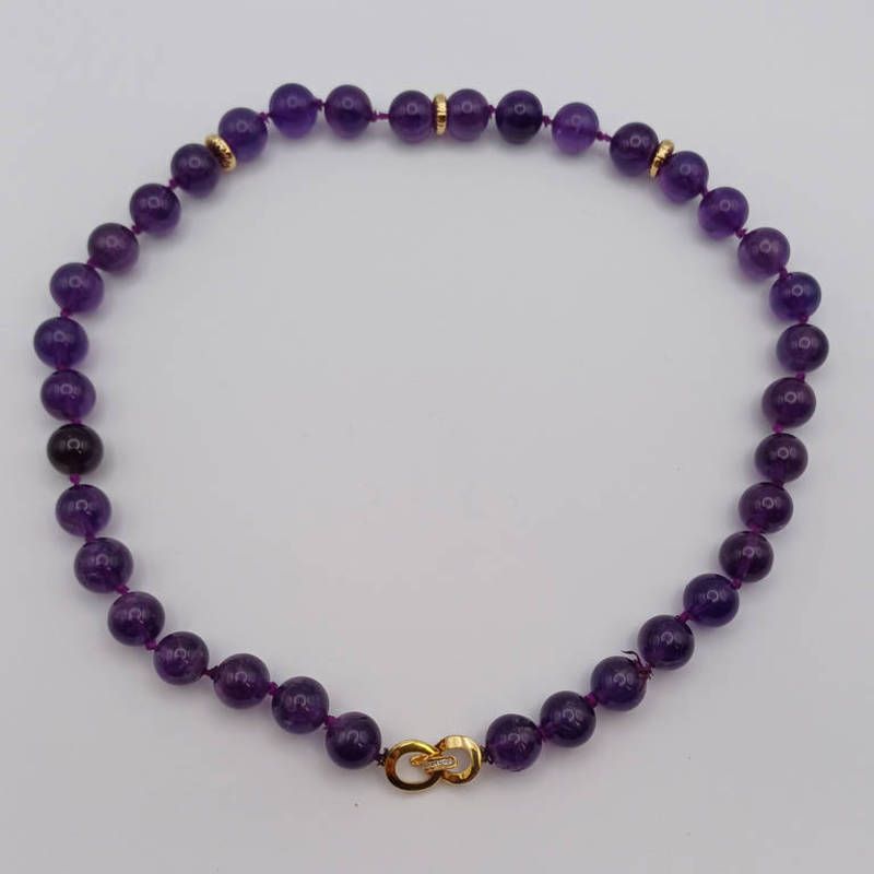 Amethyst bead necklace with a 14k gold diamond set clasp - 44.5cm long, 53.00 g