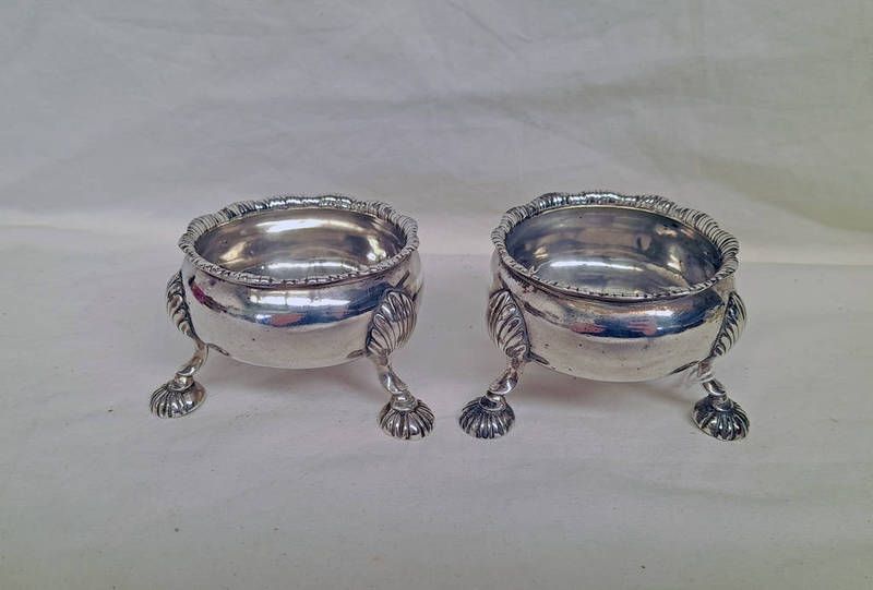 Pair of george iii silver salts on pad feet by david hennell london 1758