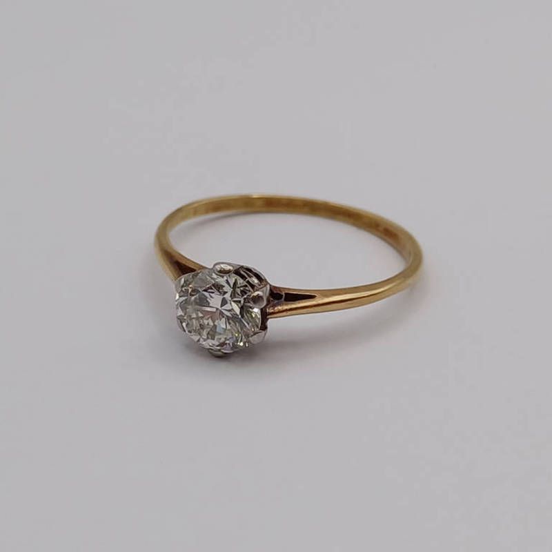 Gold diamond single stone ring, the brilliant cut diamond approx 1.0 carats - ring size s