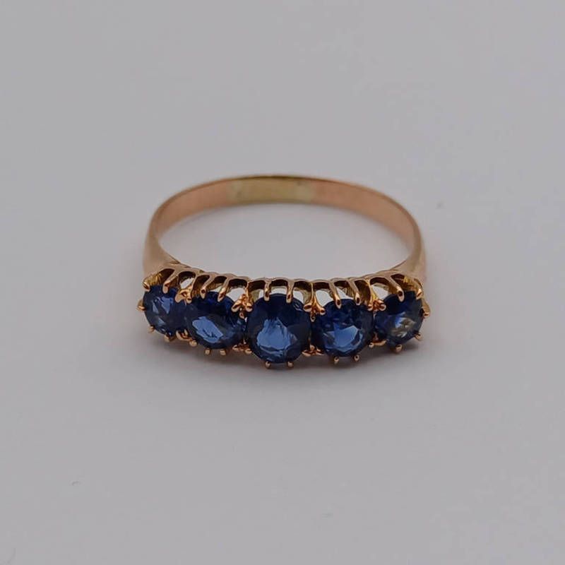 Early 20th century gold 5-stone sapphire set ring with circular & oval shaped sapphires - 2.0g, ring size n