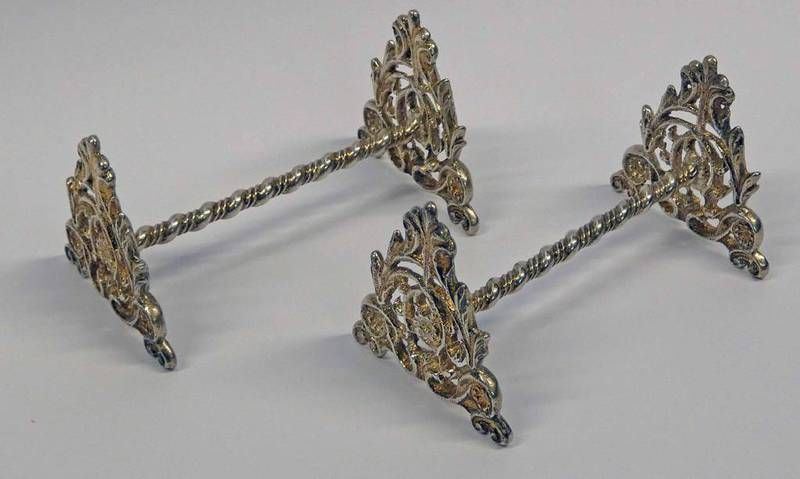 Pair of decorative silver knife rests with foliate ends by henry williamson, birmingham 1900 - 77g