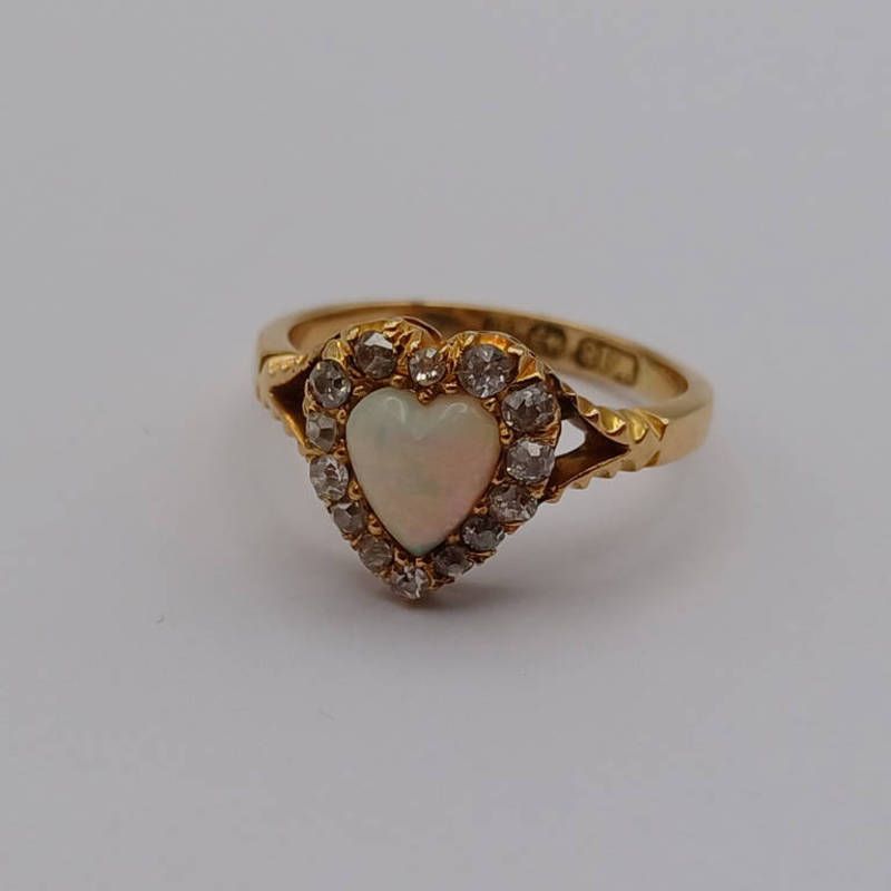 Late 19th century 18ct gold opal & diamond cluster ring, the heart shaped opal set within a surround of circular cut diamonds, hallmarked birmingham 1896 - 36 g, ring size l 1/2