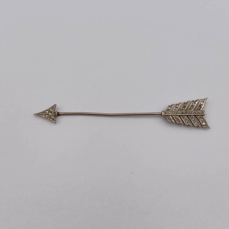 Early 20th century gold arrow jabot pin set with rose-cut diamonds - 7.3cm long, 3.6 g, 1 diamond deficient