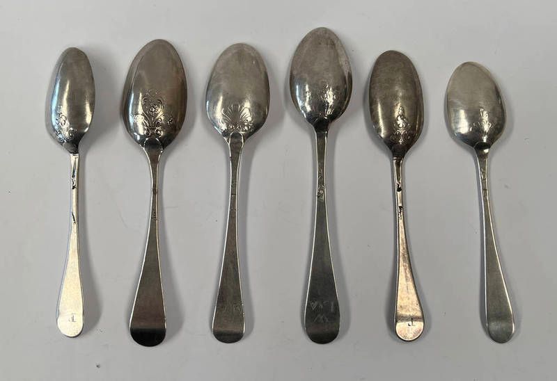 Matched set of 6 18th century silver dessert spoons, various makers london circa 1760 -...