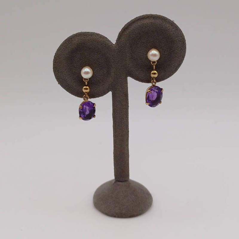 Pair 9ct gold amethyst ear studs & pair gold seed pearl & amethyst earrings -...