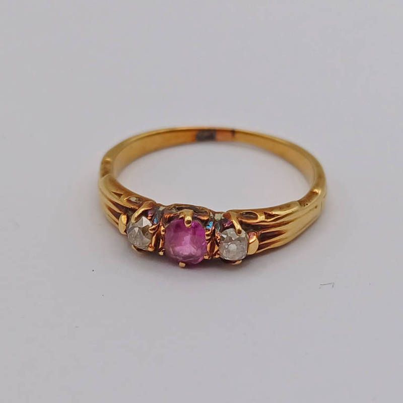 Early 20th century ruby & diamond 3-stone ring - 2.9g, ring size n