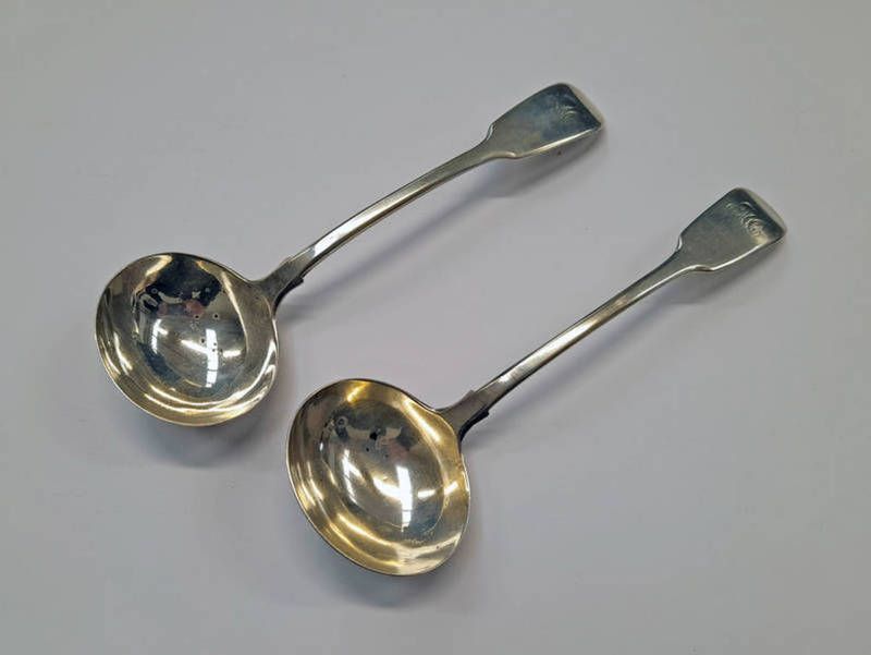 Pair of william iv silver fiddle pattern sauce ladles by mary chawner, london 1834 - 100g