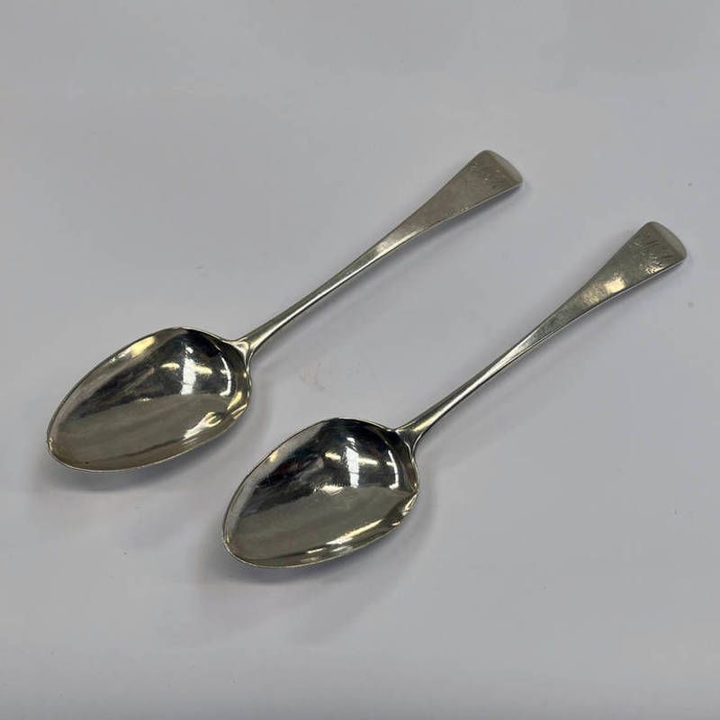 Pair george iii silver table spoons by charles hougham, london 1788 - 115 g