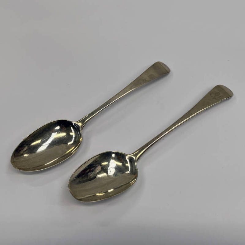 2 george iii silver table spoons by john lambe , london 1784 - 105 g