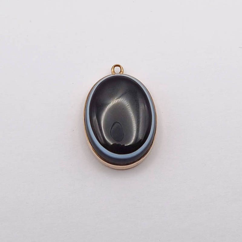 19th century gold mounted banded agate mourning pendant - 2.8 cm long, 6.5 g