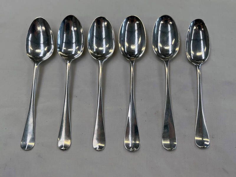 Matched set of 6 18th century silver dessert spoons, various makers london circa 1760 - 210g