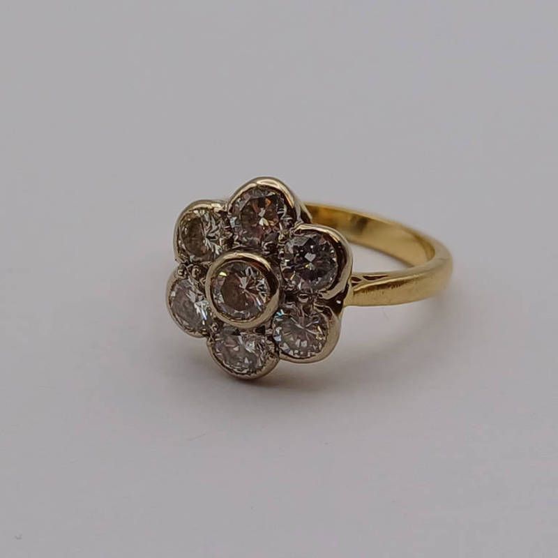 18ct gold diamond flowerhead cluster ring, the 7 brilliant cut diamonds approx 1 carat in total - ring size g