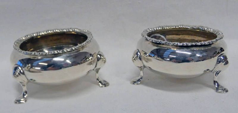 Pair of george iii silver salts on pad feet by david hennell london 1758
