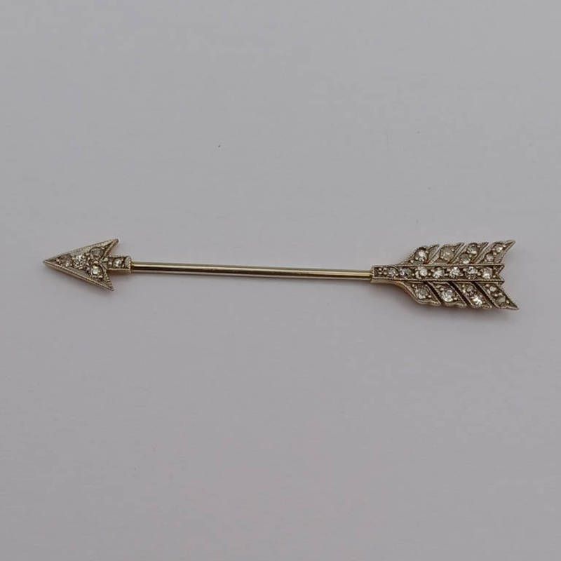 Early 20th century gold arrow jabot pin set with rose-cut diamonds - 7.3cm long, 3.6...