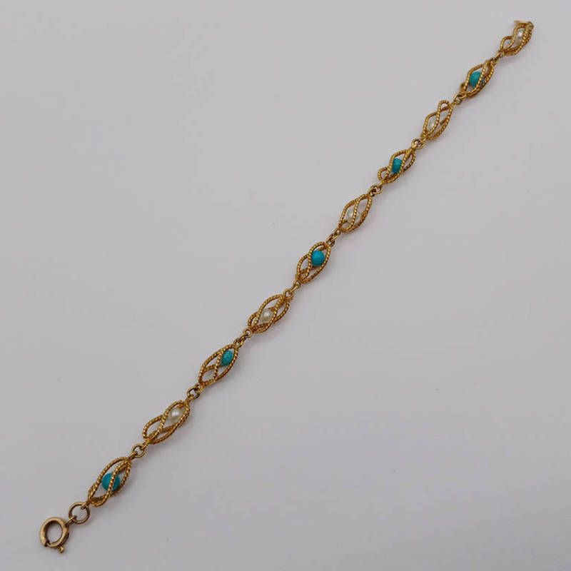 9ct gold rope twist pearl & amazonite bracelet - 19cm long, 6.5 g