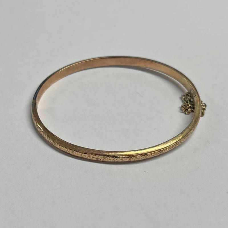 9ct gold hinged bangle with foliate engraved decoration - 4.2 g, 5.9 cm inner diameter