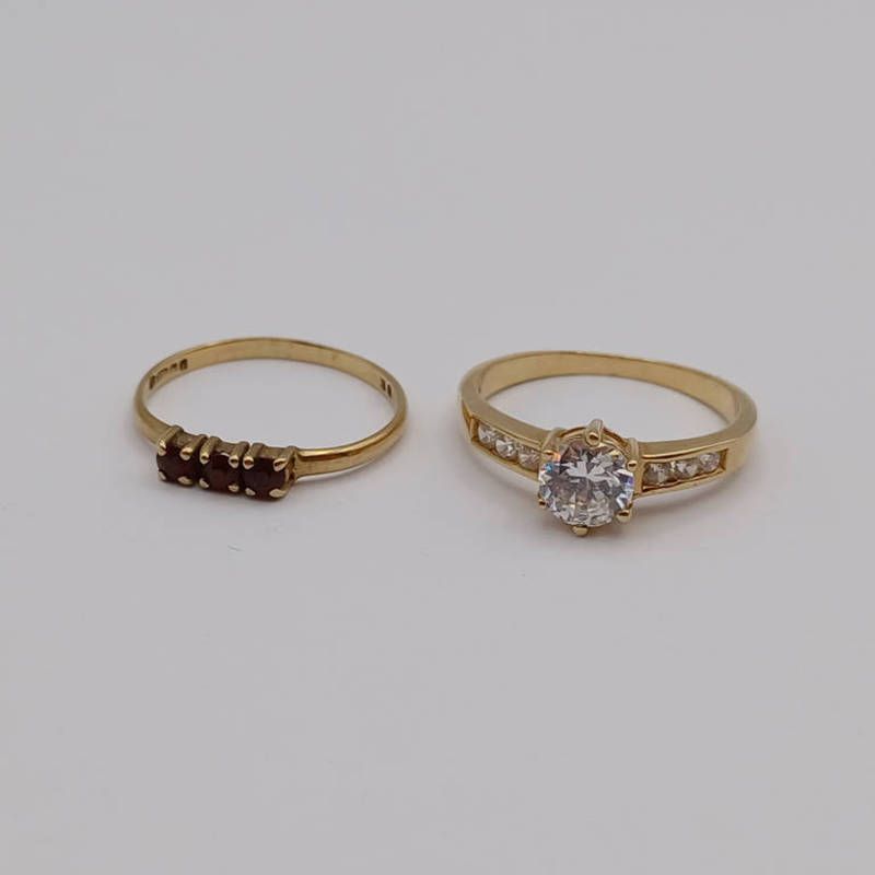 2 x 9ct gold gem set rings, 3.5g, ring size n & o