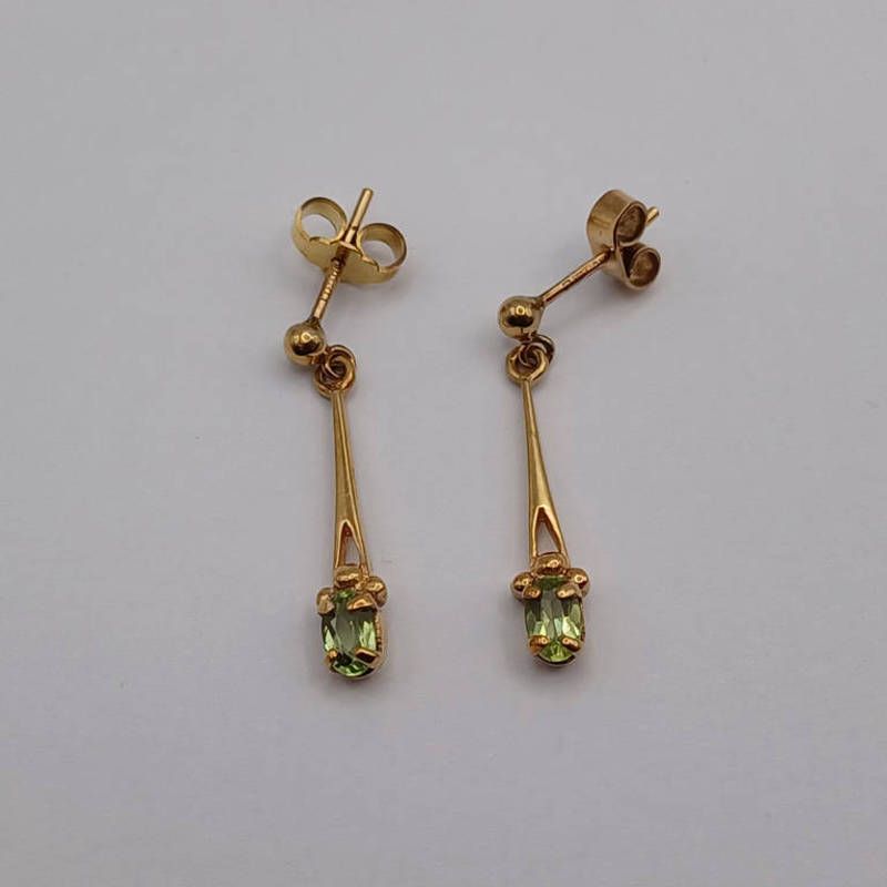 Pair of 9ct gold rainbow fluorite faceted ear drops & a pair of 14k tourmaline...