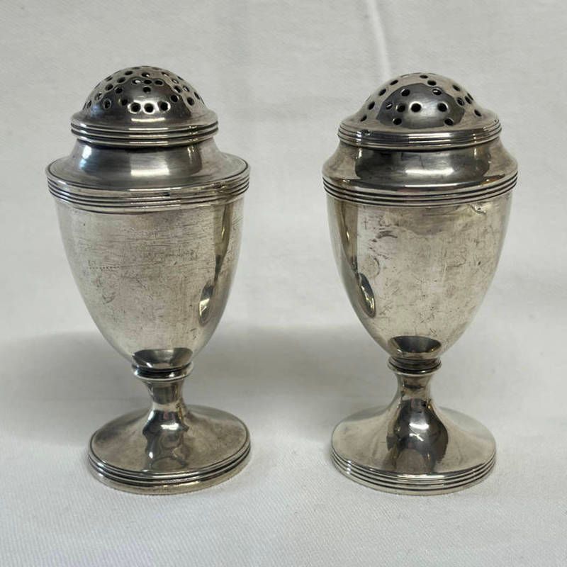 Matched pair of george iii silver pepper pots by john emes, london 1804 & henry green, london 1815 - 75g