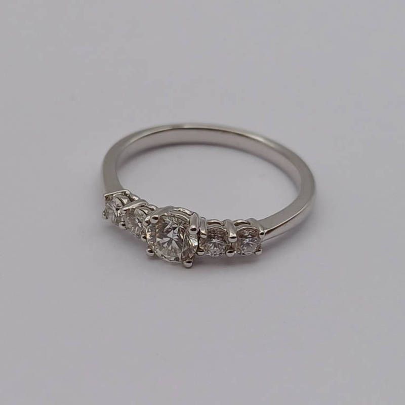 18ct gold diamond 5-stone ring, the central diamond approx 0.35 carats flanked by 2 smaller diamonds to each side - ring size m