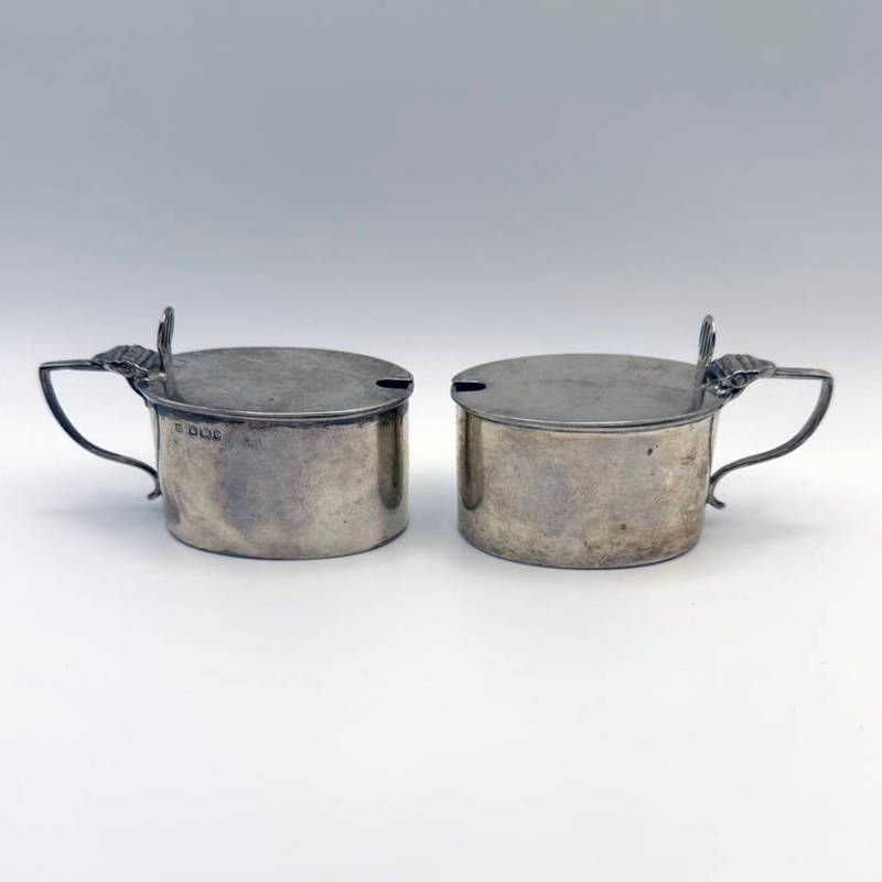 Pair of silver oval mustard pots with blue glass liners, sheffield 1895 - 132 g. weighable silver