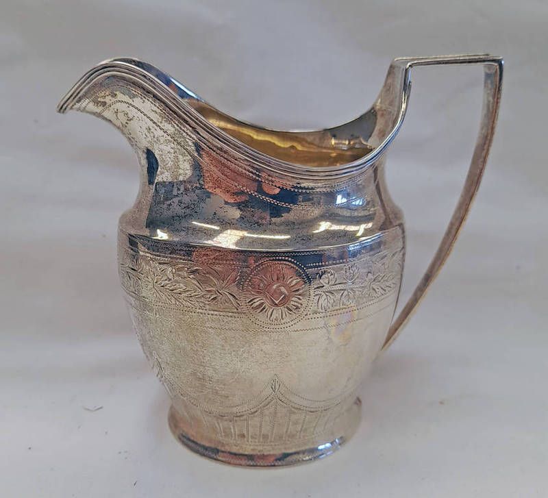 George iii silver cream jug engraved with floral swags by alexander field london 1797 - 130g