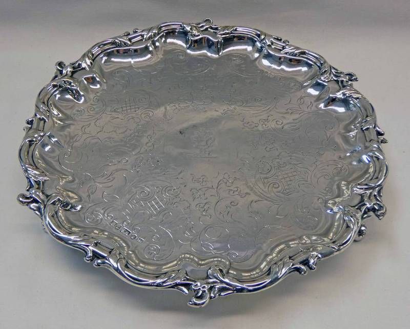 Victorian silver card tray with foliate scroll decoration by william simpson birmingham 1844 - 21cm diameter - 265g