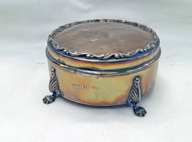 Pair oval silver salts, silver topped oblong glass trinket box & silver top for glass...