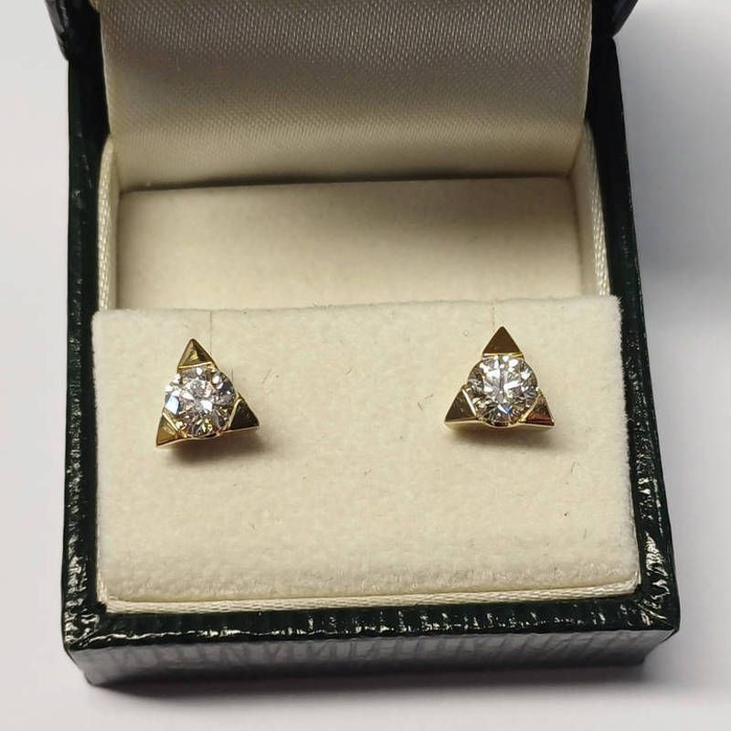 14k gold diamond set earstuds, the brilliant cut diamonds approx 1.0 carats in total