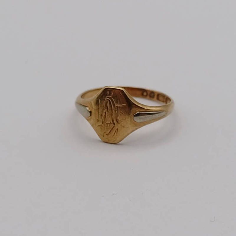 9ct gold signet ring - 1.9g, ring size l