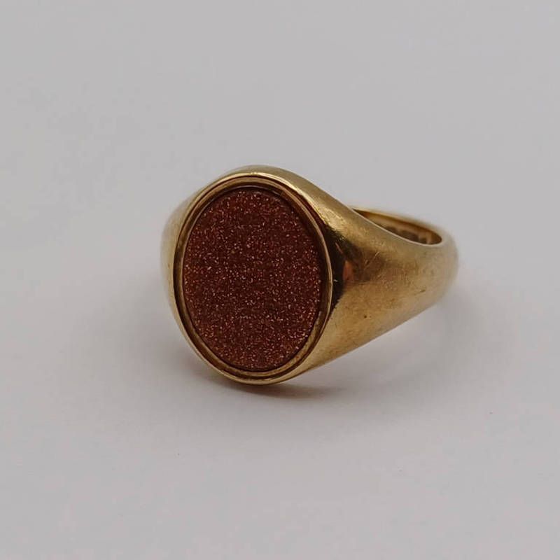 9ct gold signet ring with gold stone panel - 2.9g, ring size g 1/2