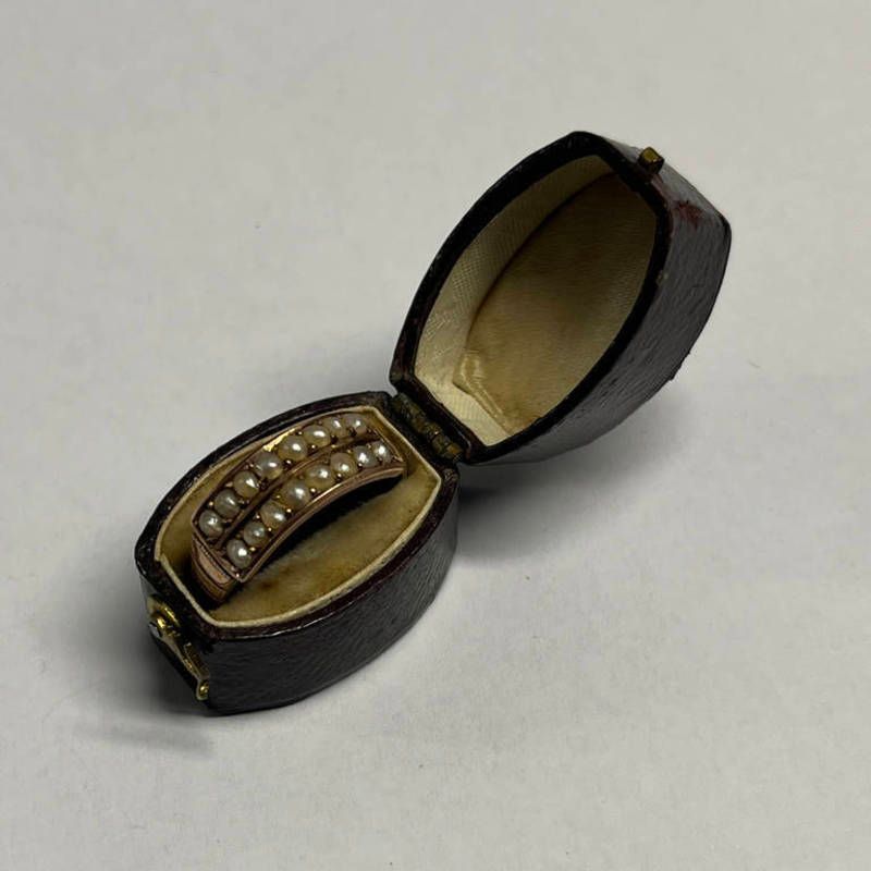 Victorian 9ct gold half hoop pearl set ring, birmingham 1886 - 3.0g, ring size q