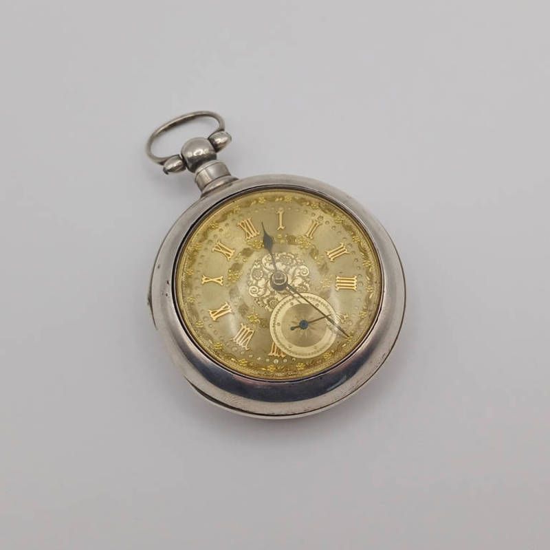 A victorian silver pocket watch, chester 1877 (back of case missing) (as found) & a...