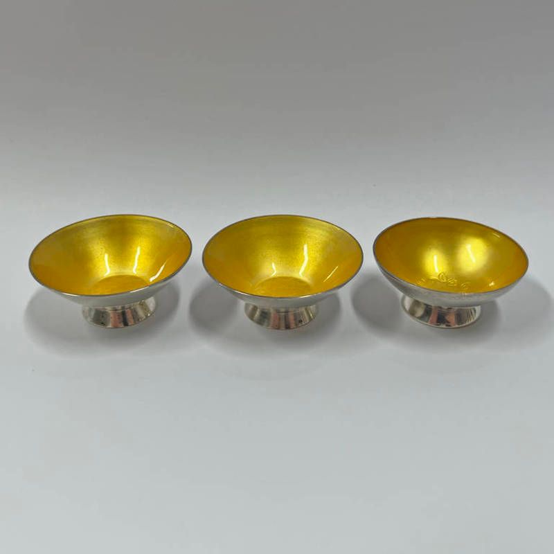 Set of 3 danish silver & yellow enamel salts by egon lauridsen - 5cm diameter