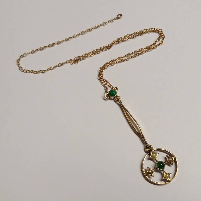Early 20th century 9ct gold pendant set with chrysoprase & seed pearls on a 9ct gold chain - 2.1 g