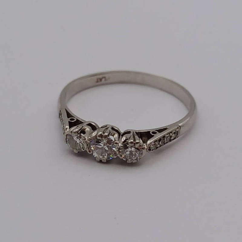 French art deco diamond set ring, the central diamond approx 0.25 carats set between a...